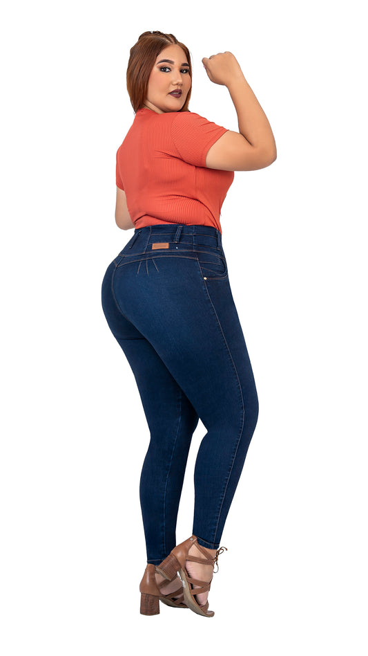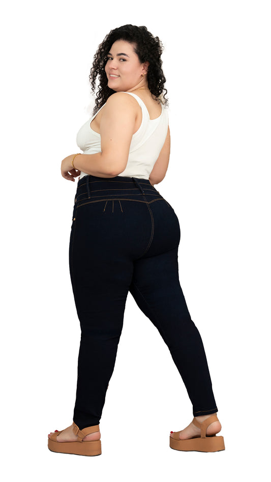 Jean skinny azul oscuro – pretina ancha con 3 botones y realce trasero 2-702